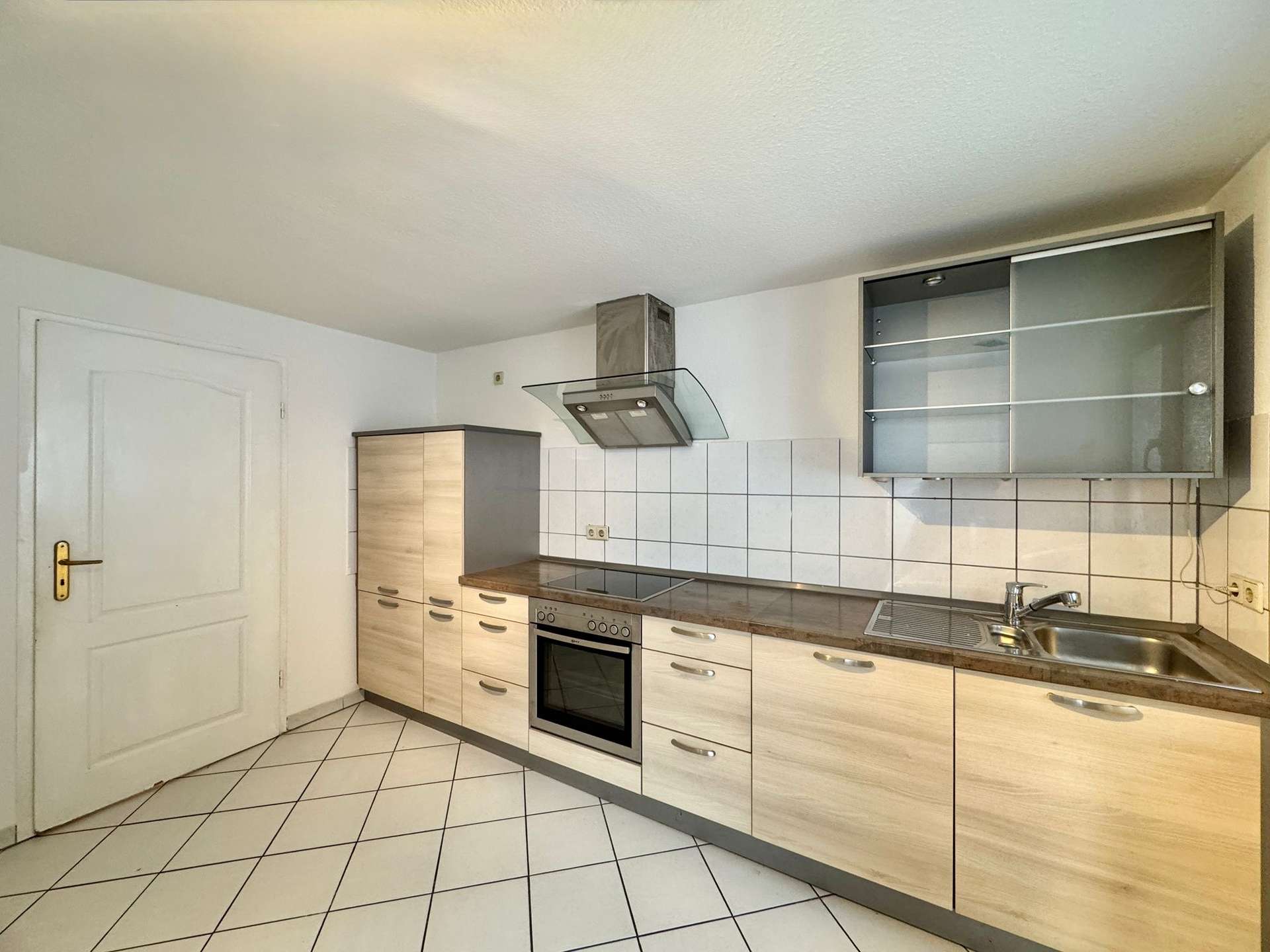 Die Wohnung verfügt über eine großzügige Küche, die mit einer Einbauküche ausgestattet ist und ausreichend Platz für einen Esstisch mit Stühlen bietet – ideal für gemeinsames Kochen und gesellige Abende. Funktionale Fenster sorgen für eine angenehme Belichtung und unterstreichen die wohnliche Atmosphäre.
