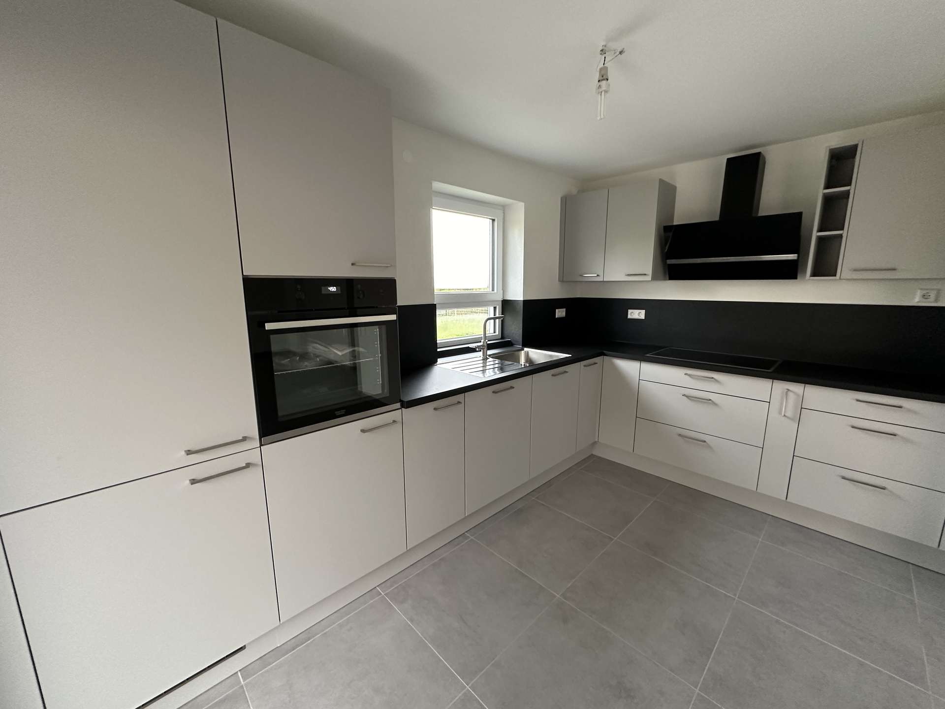 Die hochwertige Einbauküche ist perfekt für Kochliebhaber und lädt zu geselligen Abenden ein. Das Tageslichtbad besticht durch eine ebenerdige Dusche mit Regenwalddusche, die für ein entspannendes Duscherlebnis sorgt.
